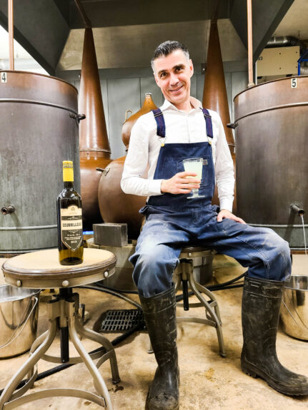 Il réussit à embarquer dans sa folie son frère Jonathan qui ouvre, en 2015, la filiale québécoise de la distillerie Fils du Roy à Saint-Arsène, dans le Bas-Saint-Laurent et produit, l’année suivante, son absinthe québécoise, la Courailleuse. Bien que cette filiale ait fermé ses portes en 2024, des bouteilles de la Courailleuse faites d’aromates ayant poussé en sol québécois sont toujours disponibles dans l’Espace Québec de la SAQ. Les autres proviendront désormais du Nouveau-Brunswick.