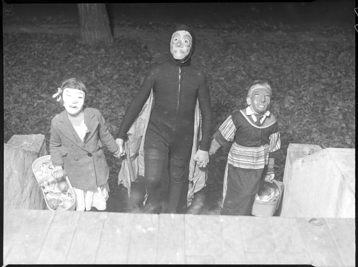 Revêtus de costumes traditionnels reprenant le thème de la nature en déclin, fabriqués à partir de bois mort, de peau de chèvre, de crânes d’animaux, de lichen et de foin, de jeunes gens d’Écosse et d’Irlande prennent l’habitude de personnifier les esprits malicieux. Commettant des actes de vandalisme et défilant bruyamment de porte en porte, ils réclament les offrandes de fruits, de noix, de bières ou de pièces de monnaie destinées aux créatures de la nuit.
